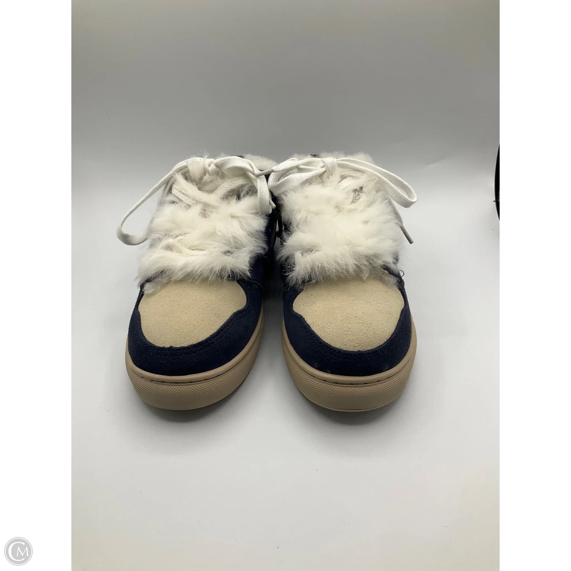 Step into sophistication with these blue and cream Shoes Sneakers by Clothes Mentor in size 6. Elevate your style effortlessly.
